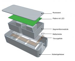 Die Segmenttrennwände der Ziffern sind zur besseren Lichtstreuung mit weißer Folie beklebt. Sie können auch gestrichen werden.