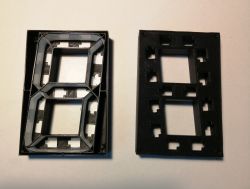 Alle Elemente bis auf die Rückwand (HDF) werden aus PLA gedruckt. Der Montagerahmen ist aus zwei Teilen zusammengeklebt.
