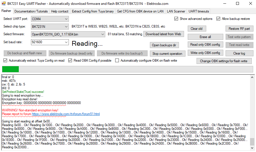 Und dann, schließlich, es auf BK7231M (oder ähnlicher Schaltung) im BK7231M-Modus flashen.
