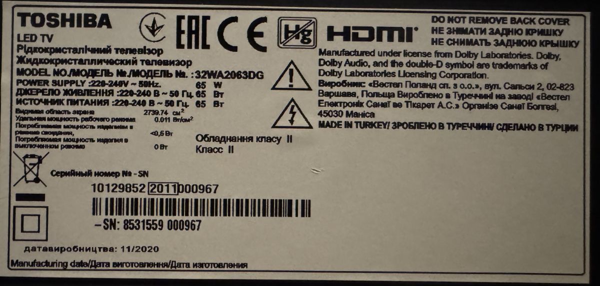 mein Toshiba TV 43UA2063DG läßt sich nicht mehr einschalten. Steckt man den Stecker ein, blinkt die LED ein paar Mal im Wechsel zwischen rot und grün.
