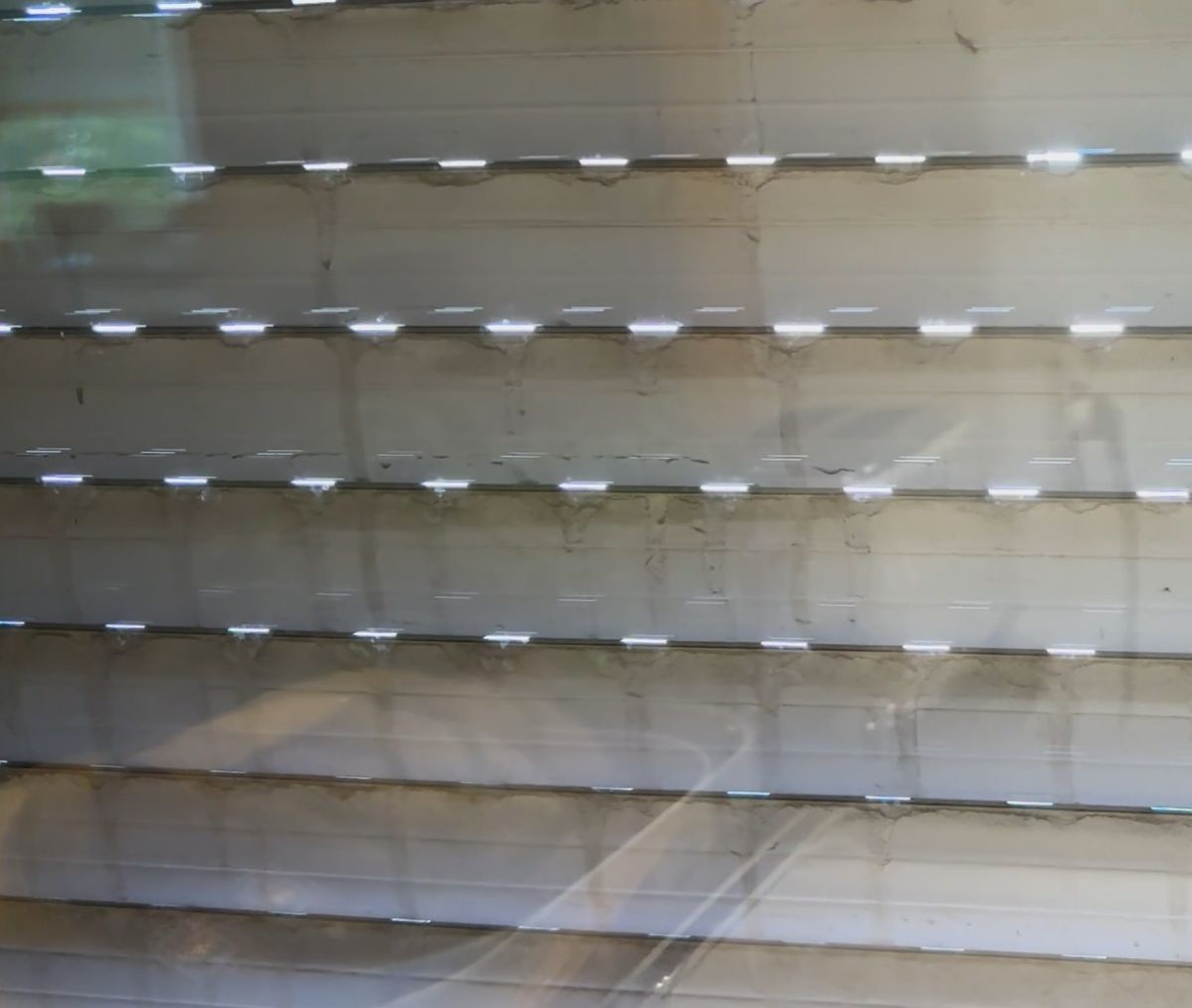 Revisionsöffnung der Jalousie aufmachen und die Lamellen entfernen. Befindet sich die Revisionsöffnung an der Außenseite und ist die Jalousie hoch über dem Boden, kann man auch die Fensterscheibe entfernen. In beiden Fällen ist ein steifer Spachtel sehr nützlich.