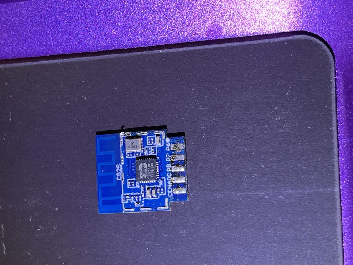 Danach hab ich den Alu-Deckel entfernt, um an den Chip zu kommen: Es handelt sich um einen BEKEN BK7231M _ F03070X0 (oder XQ?)
